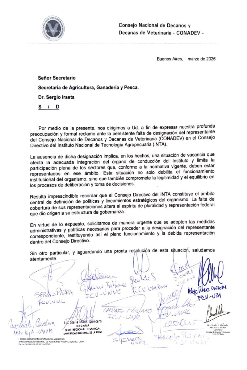 El Consejo Nacional de Decanos/as de Ciencias Veterinarias (CONADEV), es un organismo sin fines de lucro, constituido por las Unidades Académicas de las Universidades Nacionales de la República Argentina que dicten las Carreras de Ciencias Veterinarias, rigiéndose por el siguiente estatuto.